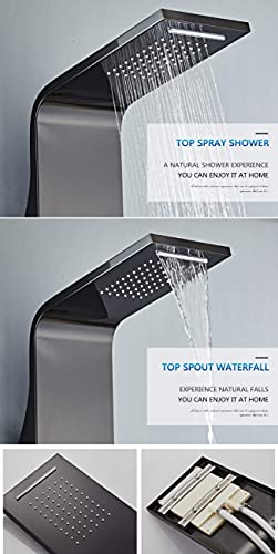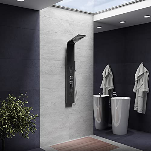 Colonna doccia idromassaggio 4 funzioni, soffione, cascata, getti idromassaggio e doccetta (NERO)