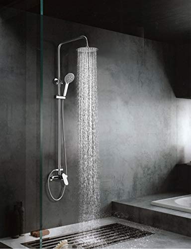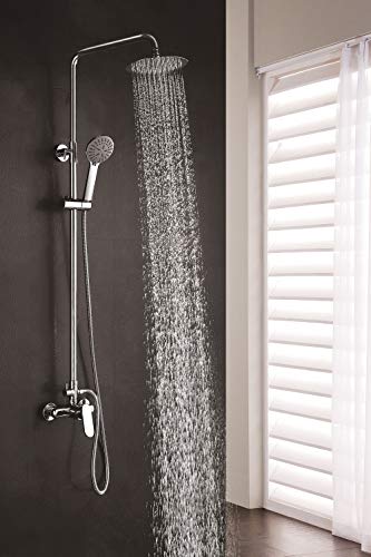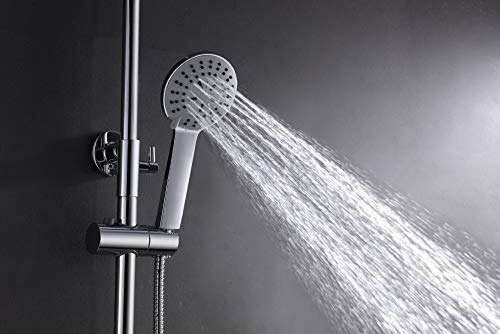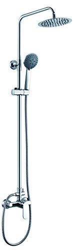 · Asta per doccia estensibile in acciaio inox. Estensibile 95/137 cm. · Spruzzatore in acciaio inox. Quadrato 20 x 20 cm, extra piatto, cromato e anticalcare.