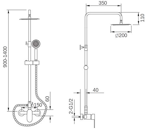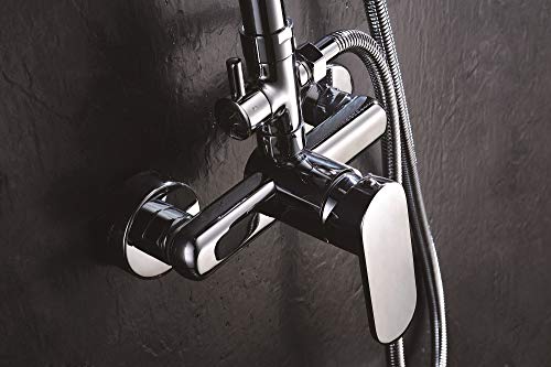 Supporto telefono regolabile in altezza. · Manico doccia quadrato. · Rubinetteria in ottone cromato.