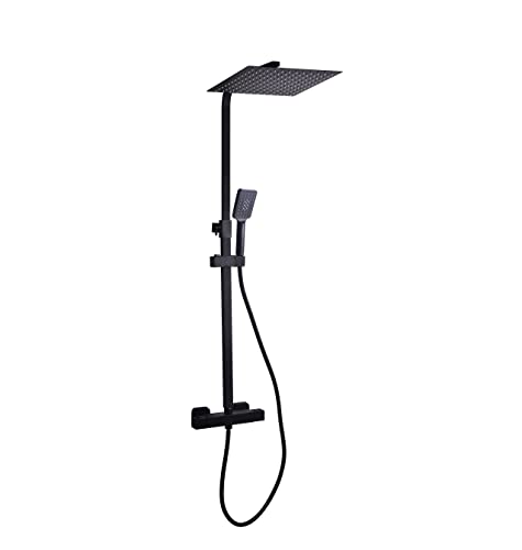 Colonna doccia nera con miscelatore termostatico e soffione quadro KZ-1003