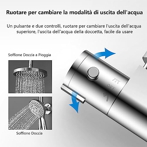 Colonna Doccia, YOOZENA Colonna Doccia con Miscelatore Termostatico, Regolabile in Altezza Doccia Soffione Colonna Acciaio Inox Cromato