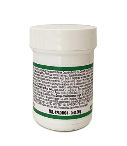 Gel Color Alimentare 30gr Verde. Molto concentrato. Ideale per prodotti a base acqua, per colorare panna, crema al burro, glassa, pasta di zucchero, impasti