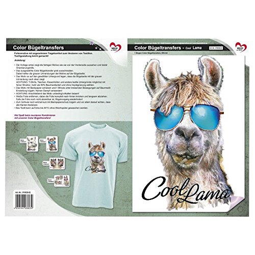 Color Buegel Transfer"Cool lama, DIN A4 | Tessile come T Shirts & Tasche Con Cinghia Tracolla motivi verzieren | immagini facile & veloce aufbuegeln | fai da te Tessile Design