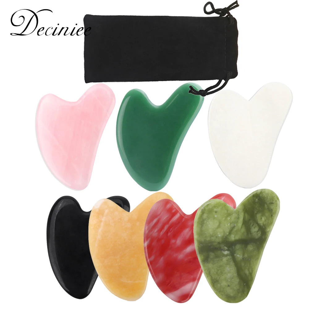 7 Color Jade Gua Sha Stone Massage Scraping Facial Tool for SPA Acupuncture Therapy Treatment Puffiness Tightening With Pouch