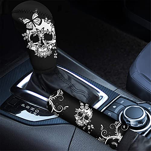 Coloranimal Copertura del cambio e copertura del freno a mano con teschio alla moda, morbida e facile da installare, set da 2 pezzi di accessori per auto da donna e uomo regalo