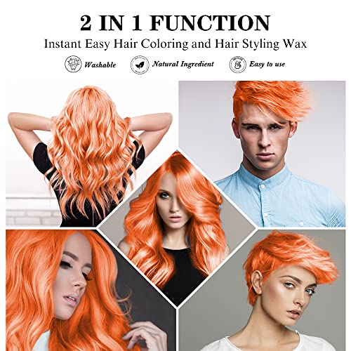 Colorazione istantanea dei capelli: raggiungi la tua acconciatura desiderata con la nostra cera per styling a base d'acqua. Dai sfogo alla tua creatività con fiducia. Questo colore professionale per capelli arancione è adatto per uomini, donne, ragazze e bambini.