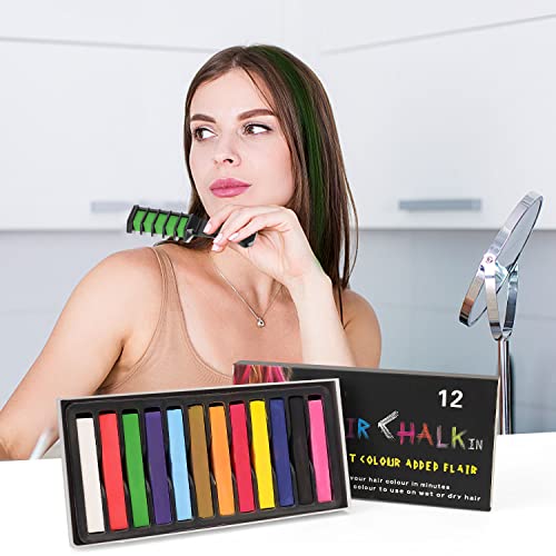 Colore Temporaneo Capelli, LNSYSNS Gessetti per Capelli, 12 Colori Lavabile Lacca Colorata per Capelli, per Bambini Capelli Tintura, Party, Carnevale, Natale e Cosplay DIY