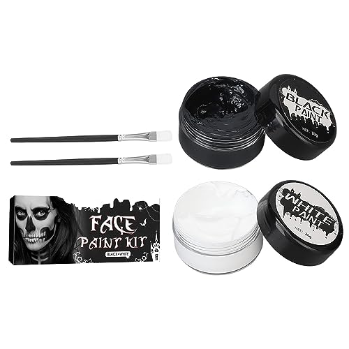 Facile da usare: colore nero per il trucco, colore bianco e due pennelli da trucco, strumenti completi, trucco semplice e veloce, effetto terribile e realistico, un kit di trucco necessario per Halloween.