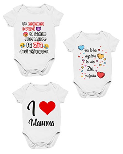 Colorfamily Confezione di 3 body da neonato Mamma e Zia - idea regalo - set da 3 pezzi