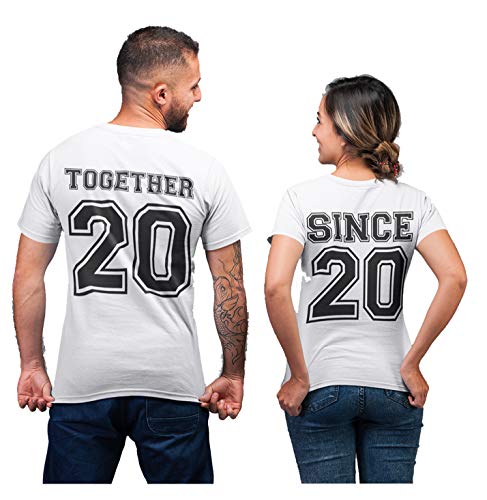 Colorfamily Coppia Magliette SanValentino Personalizzabile Together Since - personalizza con Anno di Fidanzamento o Matrimonio - Idea Regalo per Lui e lei
