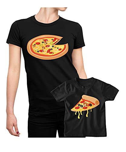 Colorfamily Coppia t-Shirt Festa della Mamma Maglietta Mamma Figlio Pizza - Idea Regalo Mamma