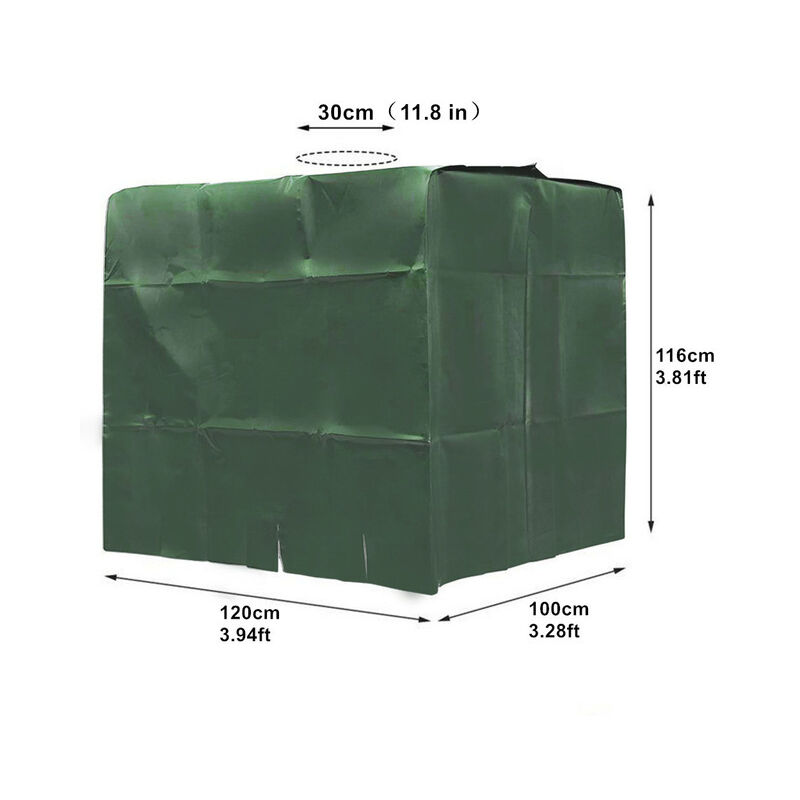 Cechy:1. Idealny w połączeniu ze zbiornikami IBC2. Trwałe i odporne na rozpad3. Poszerz swoje zbiory wody deszczowej4. Stabilizowany promieniowaniem UV5. Wypełnij i spuść możliwe6. Łatwa instalacja7. Zwłaszcza gdy zbiorniki IBC są przechowywane na zewnątrz bez zabezpieczenia, szkodliwe promienie UV mogą uszkodzić zawartość i sam zbiornik.8. Z folią ochronną UV, która jest chroniona przez nas jako modello użytkowy, zawsze masz czysta woda i przedłużasz żywotność zbiorników IBC.9. Dzięki wycięciom, tzw. Klapkom, możliwe jest nawet pełne użycie zakrytego zbiornika IBC, bez konieczności zdejmowania folii.10. Oznacza a, że istnieją obecne zamknięte otwory na wspornik palety, na kran i na pokrywę.Specyfikacja produktu:Tip: nad ziemią pokrywa zbiornika wodyMateriał: 210D tkanina OxfordRozmiar (L)x(W)x(H): 120x100x116cm / 3.94x3.28x3.81ftKolor: zielony czarny niebieski srebrnyWaga: 580gPojemność dla zbiornika IBC 1000LPakiet zawiera:1X1000 litra pokrywa pojemnika IBCUwaga:1. Proszę pozwolić
