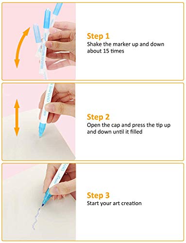 【Scrittura fluida】 Queste 2 penne magiche lucide sono progettate con una struttura a valvola, l'inchiostro scorre senza problemi e copre bene senza sanguinare. La vernice non tossica è certificata per soddisfare gli standard di sicurezza ASTM D-4236. Adatto ai bambini