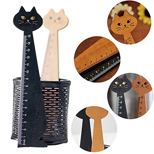 2 Colori 20 Pezzo Righello in Legno, Righello Forma Gatto, Righello per Bambini, Stile Creativo, per Ufficio, Aula, Bambini, Ragazze (Marrone e Nero)