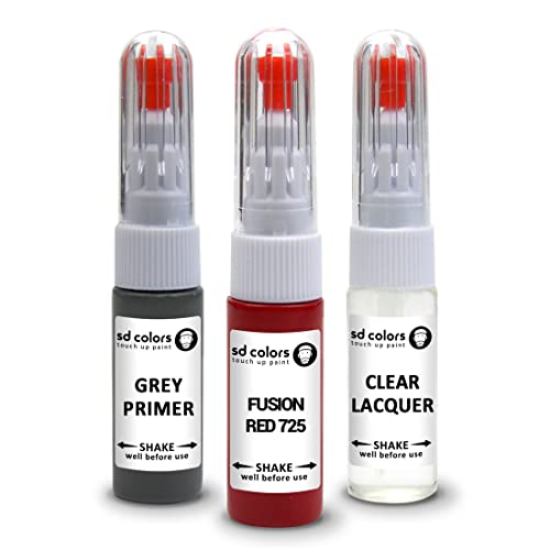 SD COLORS FUSION RED 725 compatibile con VOLVO New Touch Up Paint Pen Kit di riparazione 7 ML GRAFFI CHIP SPAZZOLA CODICE COLORE 725 FUSION ROSSO (verniciatura+PRIMER+LACQUER)