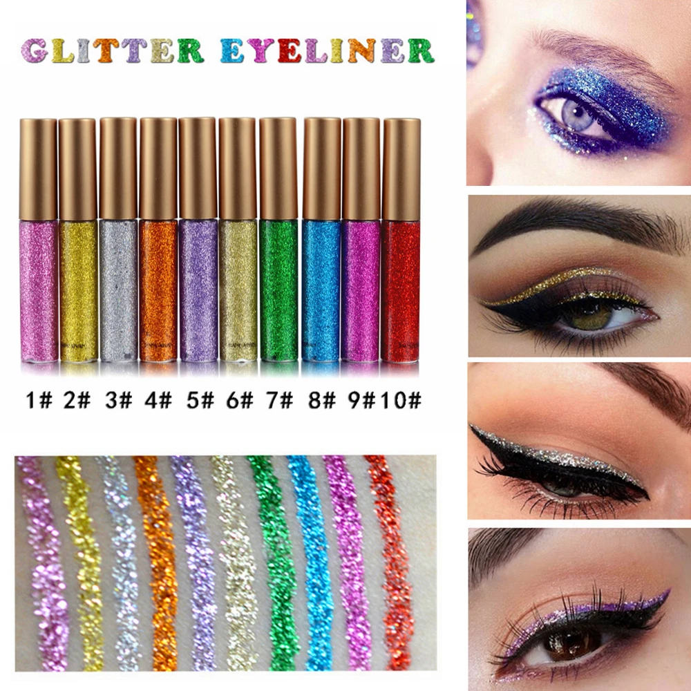10 Colors Liquid Glitter Eyeliner Metallic Shimmer Eyeshadow Pigment Eyebrown Shimmer Waterproof Face Lips Art for Party makeup