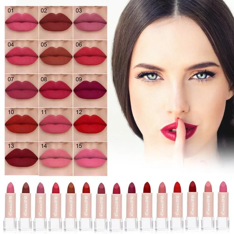 15 Colors Matte Lip Stick Makeup Moisturizing Velvet Lip Gloss Waterproof Non Stick Long Lasting Lip Glaze Lipstick Cosmetics