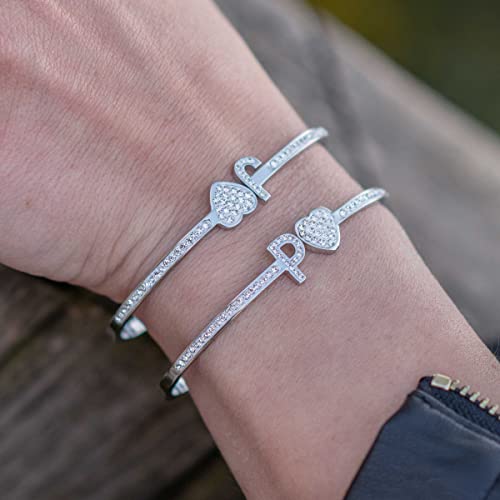 Colours & Beauty Bracciale Iniziale Donna in Acciaio Inossidabile | Bracciale con Cuore e Iniziale V |Braccialetto Amiche | Bracciale con Ciondoli | Bracciale Rigido | Bracciale con lettera V