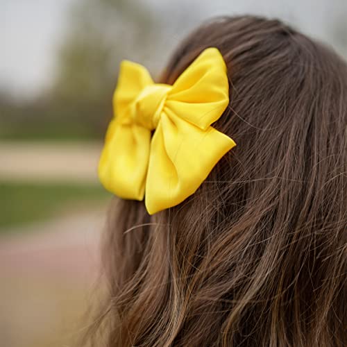 Colours & Beauty - Mollette Per Capelli Donna Con Fiocco In Raso Color Giallo | Fermagli Capelli Donna Colorati | Fiocchi Per Capelli Con Chiusura Clip Fermaglio | Ferma Capelli Per Ragazza