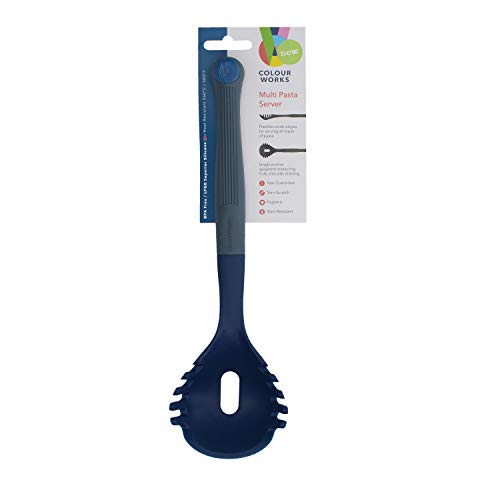 riprogettata: morbido poli Scoop e servire qualsiasi strumento di pasta, mentre il foro di scarico raddoppia come una misura spaghetti per facilitare porzioni