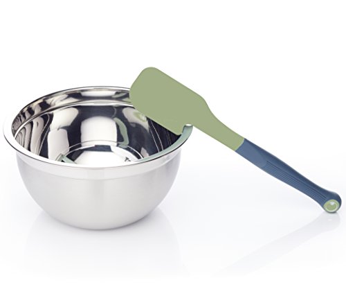 Riprogettato per ridurre il disordine e lo spreco di cibo, la tacca sulla testa della spatola funge da supporto per ciotola e strumento per la pulizia di fruste e miscelatori