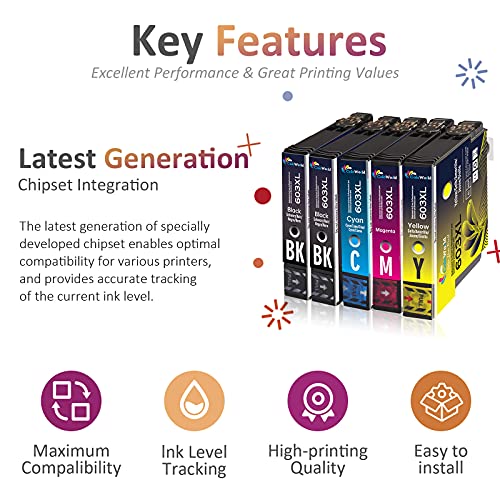 【Contenuto del prodotto】- ColoWorld sostituzione compatibile per le cartucce d'inchiostro 603 XL. (Multipack = 5 pacchetti = 2 neri + 1 ciano + 1 magenta + 1 giallo). Si prega di assicurarsi che ciò corrisponda al numero di modello della vostra stampante prima dell'acquisto.