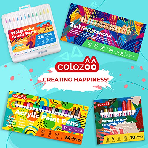 Colozoo Pennarelli Ad Acquerello | 24 Colori Per Lettering, Colorare | Punta A Pennello Brush Pen Sintetica Durevole | Effetto Vero Pennello