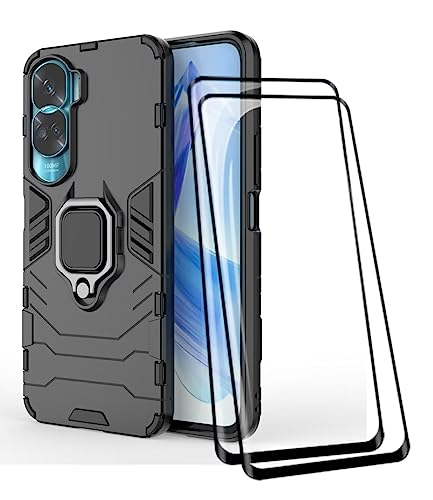 COMAKU Cover Armor per Honor 90 Lite 5G, Custodia TPU+PC Antiurto con Anello Supporto [con 2 Pezzi Vetro Temperato Pellicola Schermo ] - Nero