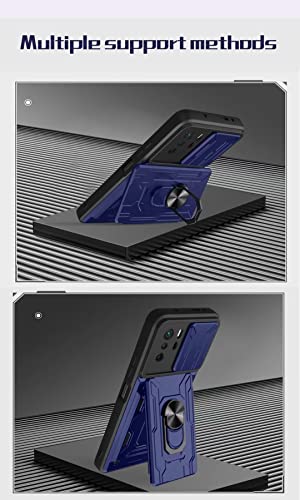 COMAKU Cover Armor per Xiaomi Redmi Note 10 5G / Poco M3 PRO, Custodia TPU+PC Antiurto con Slot per Carte Scorrevole Cover Anello Supporto - Blu