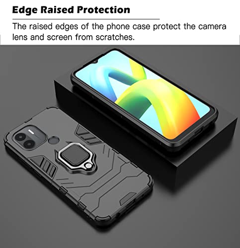 COMAKU Cover Armor per Xiaomi Redmi A1 Plus, Custodia TPU+PC Antiurto con Anello Supporto - Nero