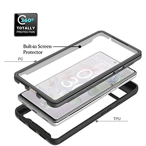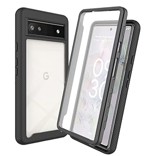 COMAKU Cover per Pixel 6a, 360 Gradi Rugged Custodia Antiurto Case con Protezione Integrata dello Schermo, Rugged Doppia Bumper Trasparente Case Integrale Cover - Nero