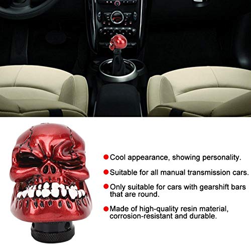 Comando leva del cranio per auto, pomello del cambio a denti piccoli a forma di diavolo con adattatori da 8 mm/10 mm/12 mm per la maggior parte dei veicoli manuali(Rosso)