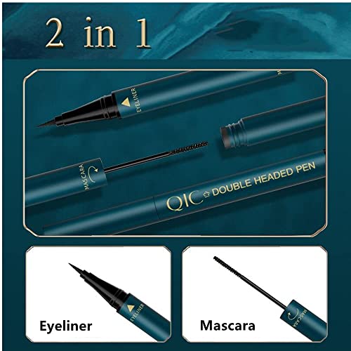 Combinazione eyeliner e mascara 2 in 1, eyeliner waterproof nero, mascara slim, ad asciugatura rapida e a lunga tenuta senza sbavature