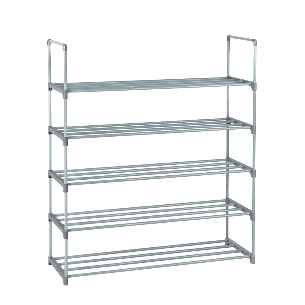 Combined Simple Shoe Rack Iron Tubes Plastic Joints Stackable Practical Organizer Shelf 5 Tiers Gray Color