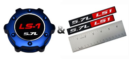 COMBO - LS1 5.7L BLUE OIL CAP in Billet Aluminum + 2 x (pair/set) RED BLACK 5.7L Liter LS1 Real Aluminum Engine Hood Emblem Badge Nameplate Crate for 97-04 Chevy Corvette C5 98-02 Chevy Camaro Z28 SS 98-02 Pontiac Trans Am / Firebird / WS6 2004 Pontiac GTO 05-06 Pontiac GTO 6.0L 99-05 Holden Vehicles