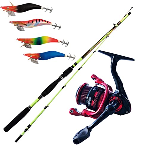 Combo EGING Canna CAPTURE 2,00mt 100g Mulinello EVO NEON 4000FX 4 Totanare in colori ULTRA CATTURANTI