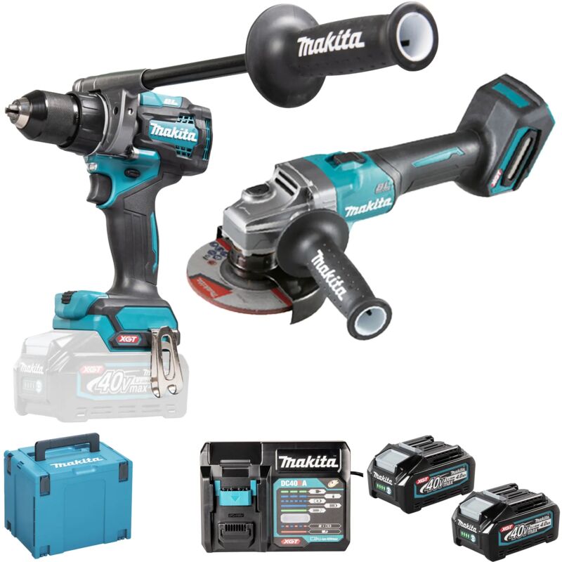 Il Combo Kit Makita DK0124G201 40V 4Ah, composto da due macchine ideale per applicazioni nei settori edilizia e ristrutturazioni professionali. Il kit include un trapano avvitatore DF001G, una smerigliatrice angolare GA005G, due batterie da 4,0 Ah e un caricatore rapido in una valigetta Makpac SPECIFICHE TECNICHE DF001G Agli ioni di litio / Ni-MH / Ni-Cd / Piombo Li-ion Tensione 40Vmax V Tipo di motoreBL Velocità a vuoto (L)0 - 650 g/min Velocità a vuoto (H)0 - 2600 g/min Coppia di serraggio 68 / 140 Nm Giunto rigido125 Nm Dim. lxwxh182x86x282 mm Peso (EPTA)3 kg Foratura metallo 20 mm Foratura legno 50 mm SPECIFICHE TECNICHE GA005G Tensione della batteria: 40 V Sistema di protezione della batteria Numero di giri a vuoto: 8500 min ¹ Filettatura del mandrino: M14 Foro: 22,23 mm Ø massimo dei dischi abrasivi: 125 mm Peso con batteria (EPTA): 3,1 - 3,4 kg Dimensioni del prodotto (L x L x A): 410 x 140 x 168 mm System: XGT 40Vmax/80V max Livello di potenza sonora (LWA): 92 dB(A) Livello di