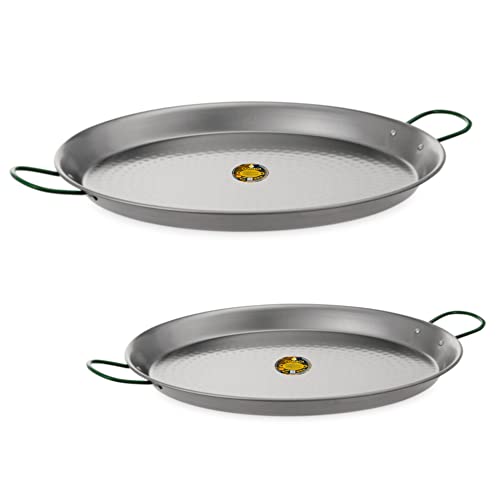 Due paellere: una di 60 cm di diametro e una di 42 cm di diametro, una livella e un mandrino da cucina.
