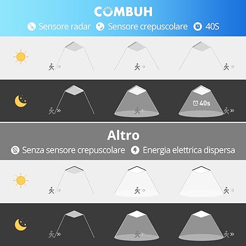 Plafoniera con rilevamento radar: con la tecnologia avanzata dei sensori radar, questa plafoniera soffitto può rilevare con precisione il movimento entro 3-6 metri. Si accende automaticamente quando viene rilevato un movimento e si spegne dopo 40 secondi di assenza di movimento. I rilevatori radar non funzionano durante il giorno.