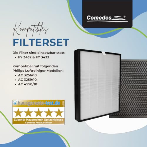Comedes Set di filtri di Ricambio per i purificatori d'Aria Philips AC3256, AC3259 e AC4550 | filtri HEPA e a Carbone Attivo | può Essere Usato al Posto di Philips FY3432/10 e FY3433/10 (Set da 2)