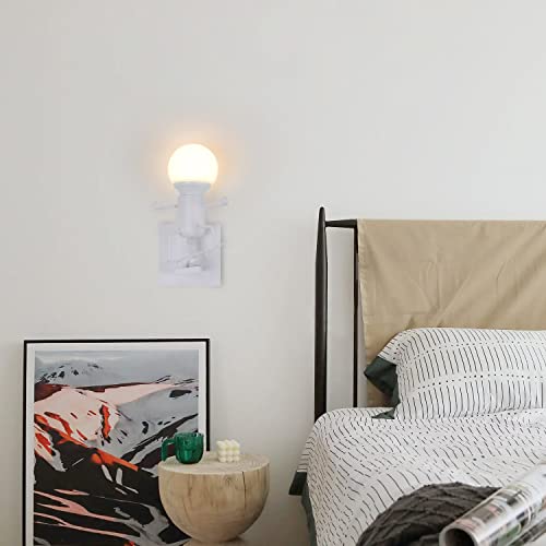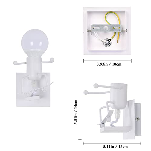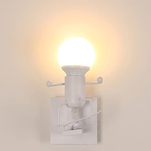 Comely Creativo Robot Lampada da Parete E27, Retro Applique da Parete con Skateboard Robot, Vintage Metallo Illuminazione da parete per Bambini Camera da Letto Ristorante Bar Corridoio Bianco
