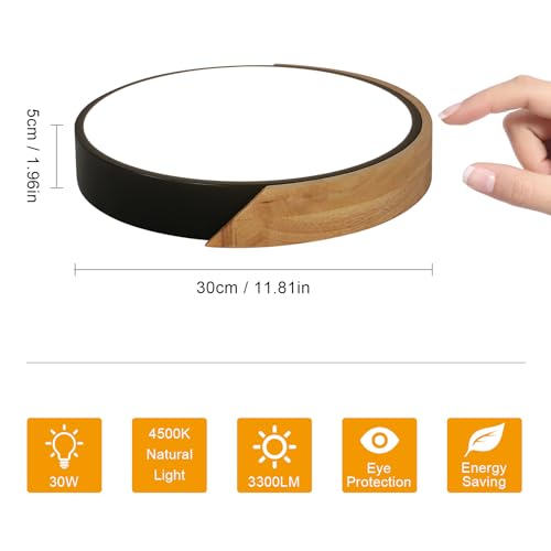 Comely Plafoniera LED in Legno, 30W 3300LM Lampada da Soffitto LED Moderno 4500K Bianco Plafoniera Rotonda per Cucina Camera da Letto Soggiorno Corridoio Ufficio