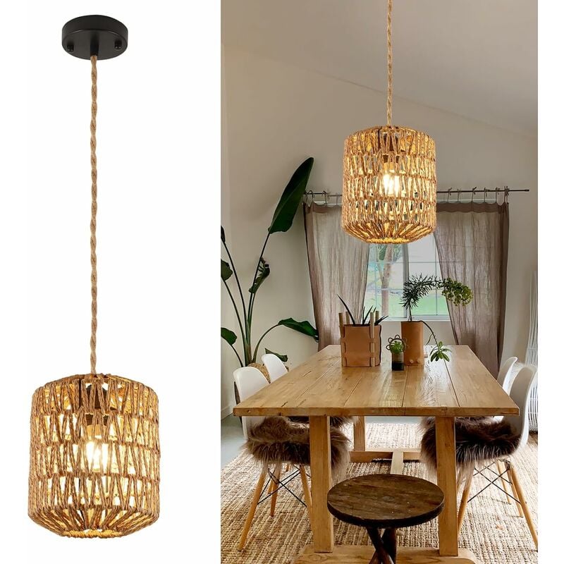 Lampadario in rattan: La lampada a sospensione in rattan è progettata in rattan intrecciato con carta, disperdendo uniformemente la luce per creare un'atmosfera calda in casa. Ideale per camera da letto, sala da pranzo, soggiorno, cucina, isola, bar, ecc. Lampadina E27: Potenza massima di 60W. Compatibile con lampadine LED, Edison, CFL, a incandescenza e alogene. Completamente dimmerabile con dimmer compatibili per un'atmosfera perfetta (lampadine o interruttori non inclusi). Lampadario regolabile: Le sospensioni in rattan regolabili da 150 cm permettono di adattare l'altezza in base alle proprie esigenze. Questo lampadario a forma di gabbia diventerà un elemento essenziale dei tuoi interni. Materiali naturali: Realizzato a mano in rattan intrecciato di carta, questo lampadario è ecologico e biodegradabile. Durevole, elimina ogni preoccupazione di rottura. Facile da installare: Fornita con hardware di montaggio e istruzioni, questa plafoniera in rattan intrecciato a mano è facile da