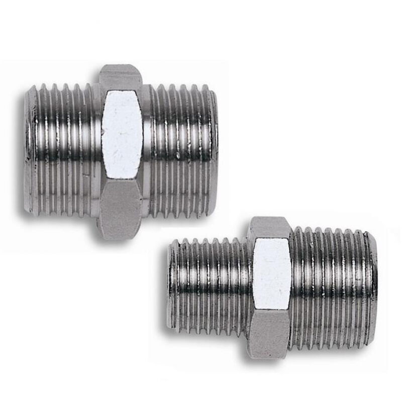 Nipplo cilindrico Particolari di collegamento per aria compressa in ottone nichelato Art. 201/5 Size: 1/4x1/4 Art. 201/6 Size: 1/4x3/8 Art. 201/8 Size: 3/8x3/8 Art. 201/9 Size: 3/8x1/2