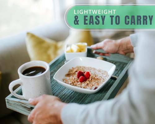 Comfify Rustico Rustico Vassoi di Legno con Manico - Set di 3 vassoi di Servizio - Vassoi per la Colazione, Coffee Table/Butler - Vassoi di Servizio Multiuso - Vassoi di Servizio a Letto - Blu