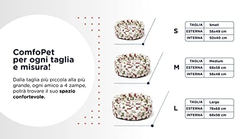 ComfoPet Cuccia Cane Morbida, Resistente, Lavabile, Cuscino Sfoderabile, Letto Cane Interno Ovale, Made in Italy (L (78x68cm))