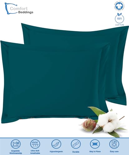 Comfort Beddings Federe per Cuscini continentali in Cotone Egiziano 100% Cotone Egiziano di Alta qualità, Confezione da 2, Verde Acqua (Dimensioni continentali/quadrate 65 x 65 cm)