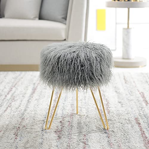 C COMFORTLAND Sgabello in Pelliccia Faux Rotondo Pouf Ottomane Peloso Puff Poggiapiedi parrucchiere Imbottita Moderno Design Decorativo per Camera da Letto Corridoio Soggiorno Trucco (Grigio)