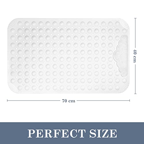 Comfoyar Tappeto Doccia con Forti Ventose e Fori di Scarico, Scrubber del Massaggio del Piede dei Tappetini Della Vasca da Bagno del TPE, Tappetino per Doccia Ideale per Anziani (Bianco)