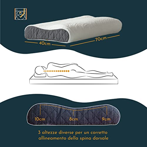 Comfy Line - Cuscino Cervicale in Memory Foam Guanciale da Letto per Dormire 70x40 Ortopedico Altezza 10 | 8 | 9 cm. Modello Ortocervicale Forato. Fodera Cotone Sfoderabile. Made in Italy 100%